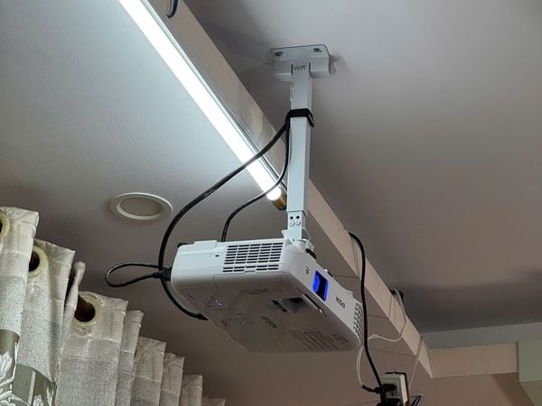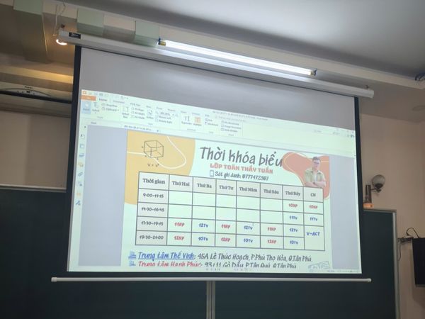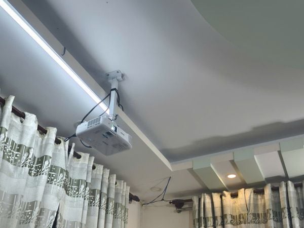 Epson EB-X06 hoàn toàn thể hiện cực kỳ tốt khi có thể chiếu được rõ ràng hình ảnh từng silde dạy học, các chữ số, hình học lên màn chiếu dùng ở trong phòng có khá nhiều đèn điện. Máy chiếu được lắp ngược lên trần nhà gọn gàng, đảm bảo không phát sinh va chạm khi các bạn học sinh, sinh viên di chuyển. Trọn bộ combo có mức giá cực kỳ tốt khi cả máy chiếu, màn chiếu lẫn chi phí lắp đặt chưa đến 15 triệu nhưng có thể phục vụ tốt cho nhu cầu dạy học hàng ngày của thầy Tuấn.