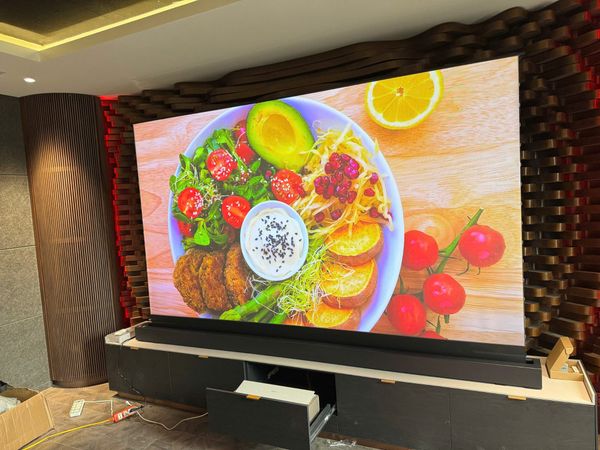 Đi kèm với mã máy chiếu Xgimi Aura 2 đã quá toàn diện và đáp ứng dễ dàng cho gần như mọi không gian thì loại màn chiếu được khách hàng lựa chọn cho ca setup này là loại màn chiếu để sàn quang học điện tự động size 120 inch.