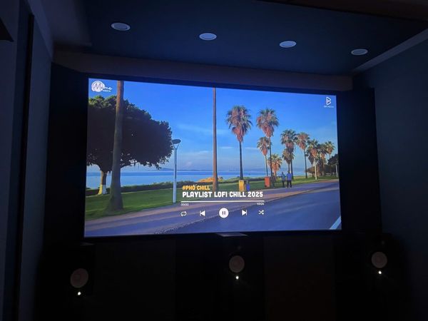 Ngay cả khi khách hàng không hề sử dụng màn chiếu mà tin tưởng Mắt thấy tai nghe tư vấn, chiếu trực tiếp NF300 GTV lên mảng tường sáng màu ngay phía đối diện với ghế ngồi phòng khách, hiệu quả trình chiếu vẫn đạt được cực kỳ tốt. Khách hàng giờ đây có thể dễ dàng trải nghiệm được màn hình giải trí lên đến 100 inch cực kỳ rộng lớn ngay tại nhà với mức chi phí cực kỳ tốt chưa đến 10 triệu.