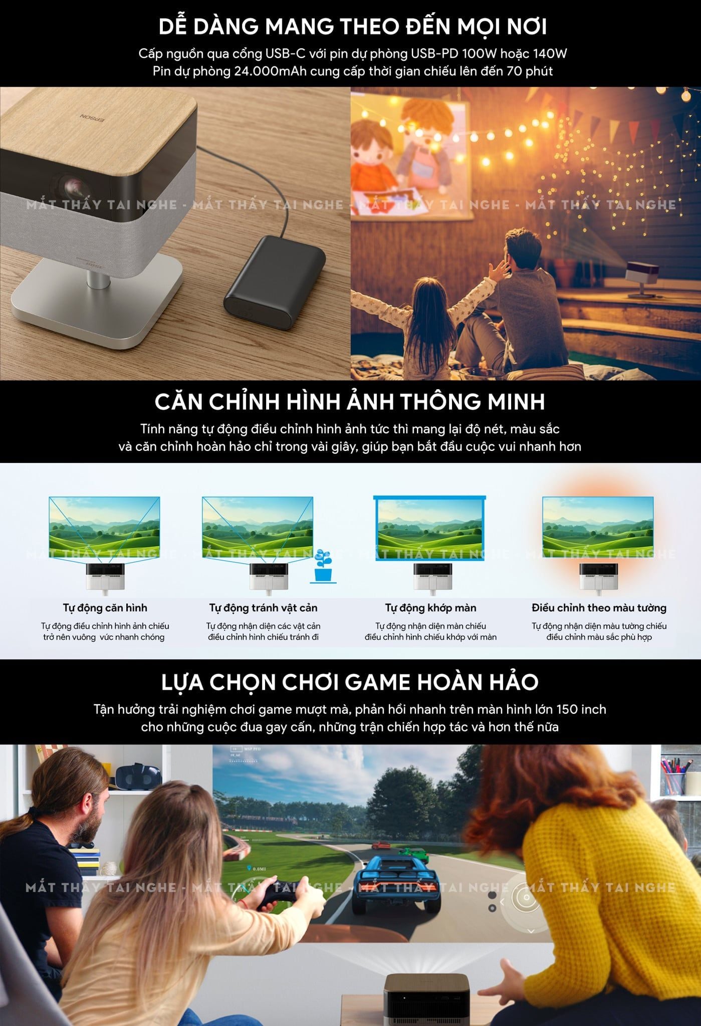 | Đặc điểm đặc biệt | Hỗ trợ Netflix chính chủ Khởi động nhanh chỉ 7.5 giây Auto Shape Correction: tự động phát hiện và điều chỉnh biến dạng hình ảnh Frame Interpolation: nội suy chuyển động Scene Adaptive Gamma: điều chỉnh chất lượng hình ảnh Autofocus: tự động lấy nét Auto keystone: tự động chỉnh méo hình góc tối đa 20 độ Automatic obstacle avoidance: tự động nhận diện vật cản |