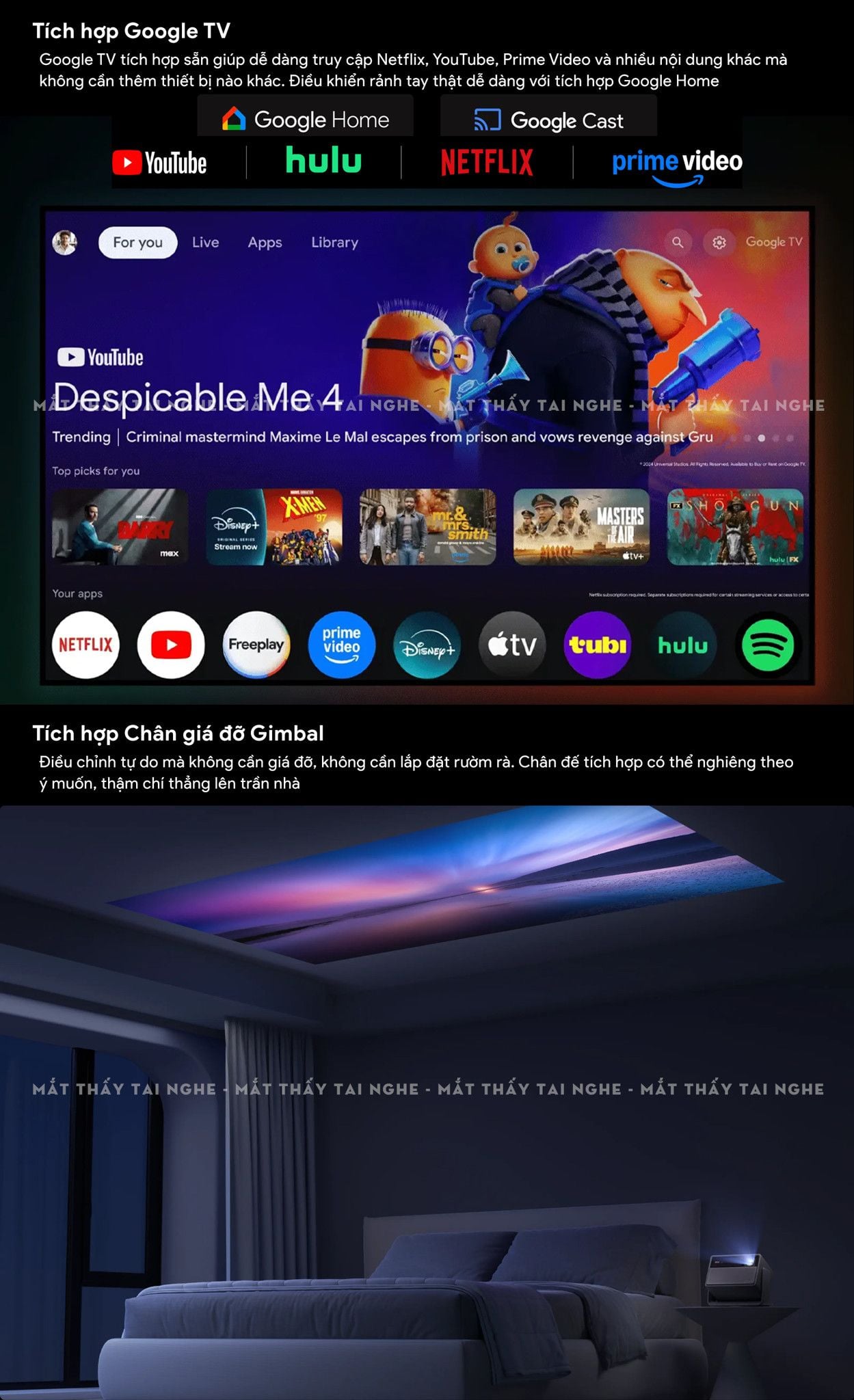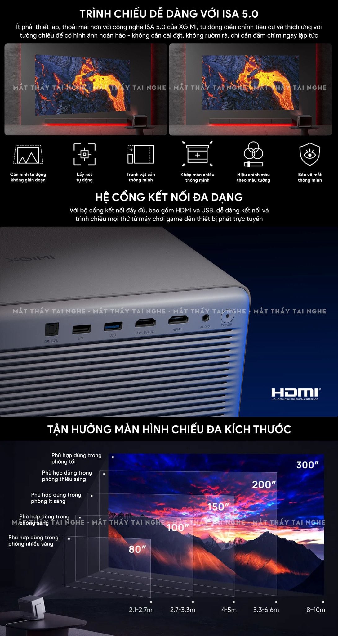 | Kích thước chiếu | 40'' - 300'' (khuyến nghị 60 - 150") |