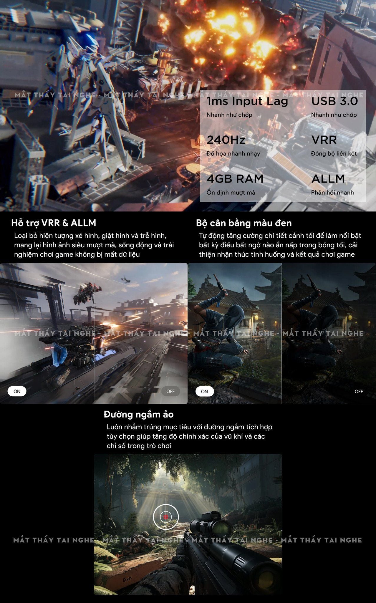 | Game Mode | 1ms at 1080P@240Hz 2.2ms at 1080P@120Hz 3ms at 4K @60Hz |